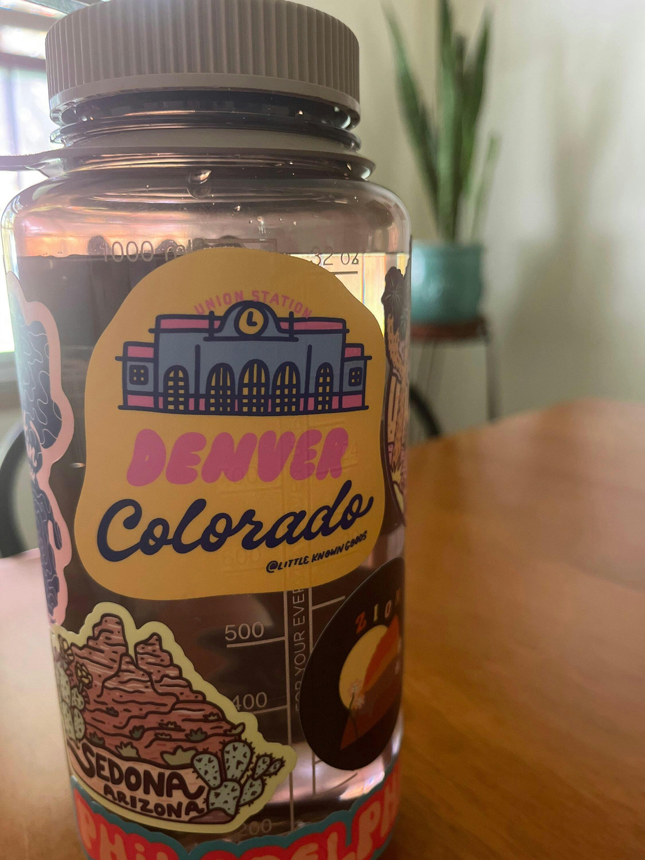 Illustrated Denver sticker featuring Union Station, the city's downtown cultural and transportation hub built in 1914 and renovated in 2012.